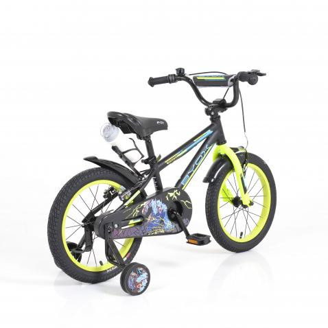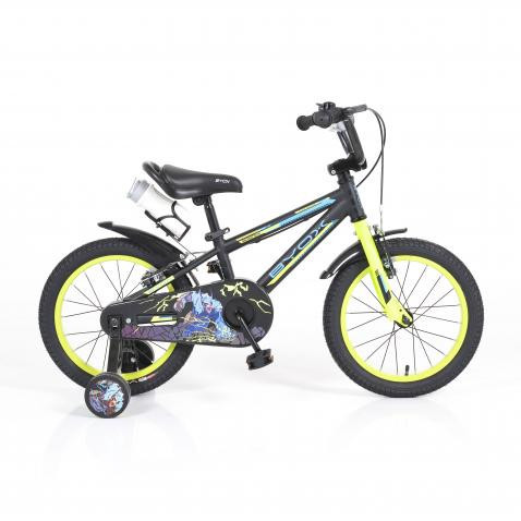 Gyermek kerékpár 16” Acél váz. Acélötvözetből készült váz és Könnyűfém keréktárcsák. Első és hátsó V-fék. Műanyag sárvédők és láncvédő.