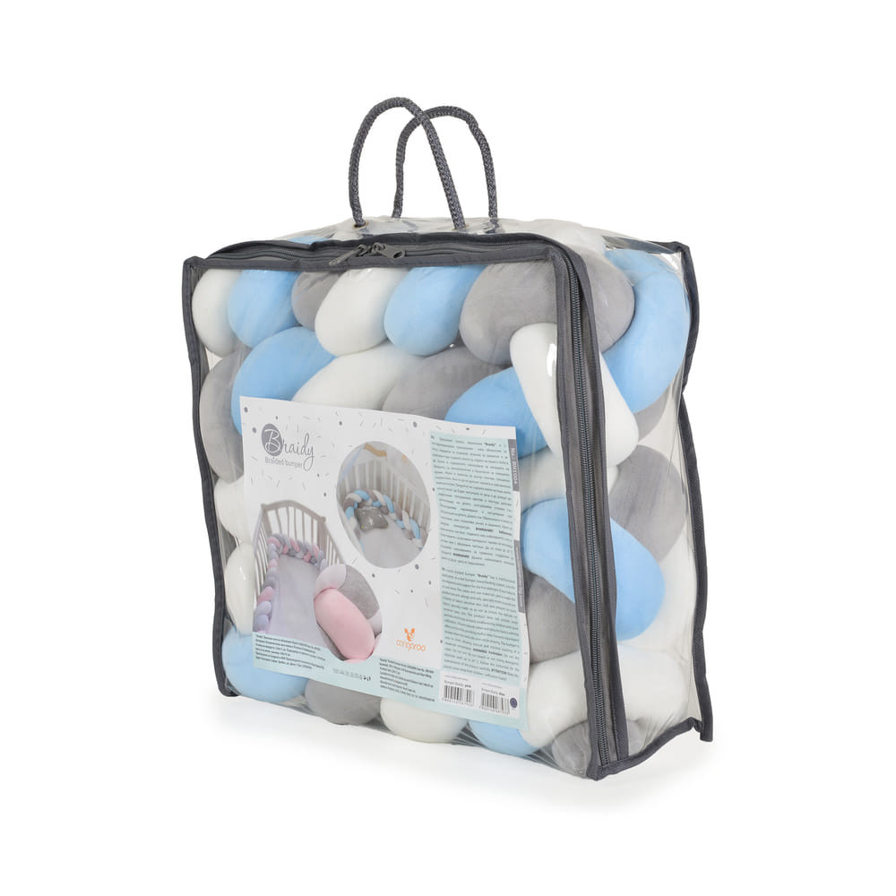 A luxus fonott ágyvédő "Braidy" többfunkciós alkalmazással rendelkezik - ágyvédőként, szoptatást segítő eszközként, fejlesztő játékként és támogatásként a gyermek hátának az első ülési kísérleteihez és még sok másra. Puha és kellemes tapintású anyagokból készült, a töltése pedig környezetbarát szilikonból áll. A semleges színek és textúrák nyugtató hatással vannak a gyermekre, biztosítva a nyugodt alvást. Megakadályozza a sérüléseket és zúzódásokat, amikor a gyermek alvás közben gördül. A gyűrű könnyen tisztítható, kézi és gépi mosással közepes hőmérsékleten. Könnyen telepíthető és mérete megfelelő a babaágyakhoz 120 * 60 cm és a gyerekágyakhoz 140 * 70 cm.