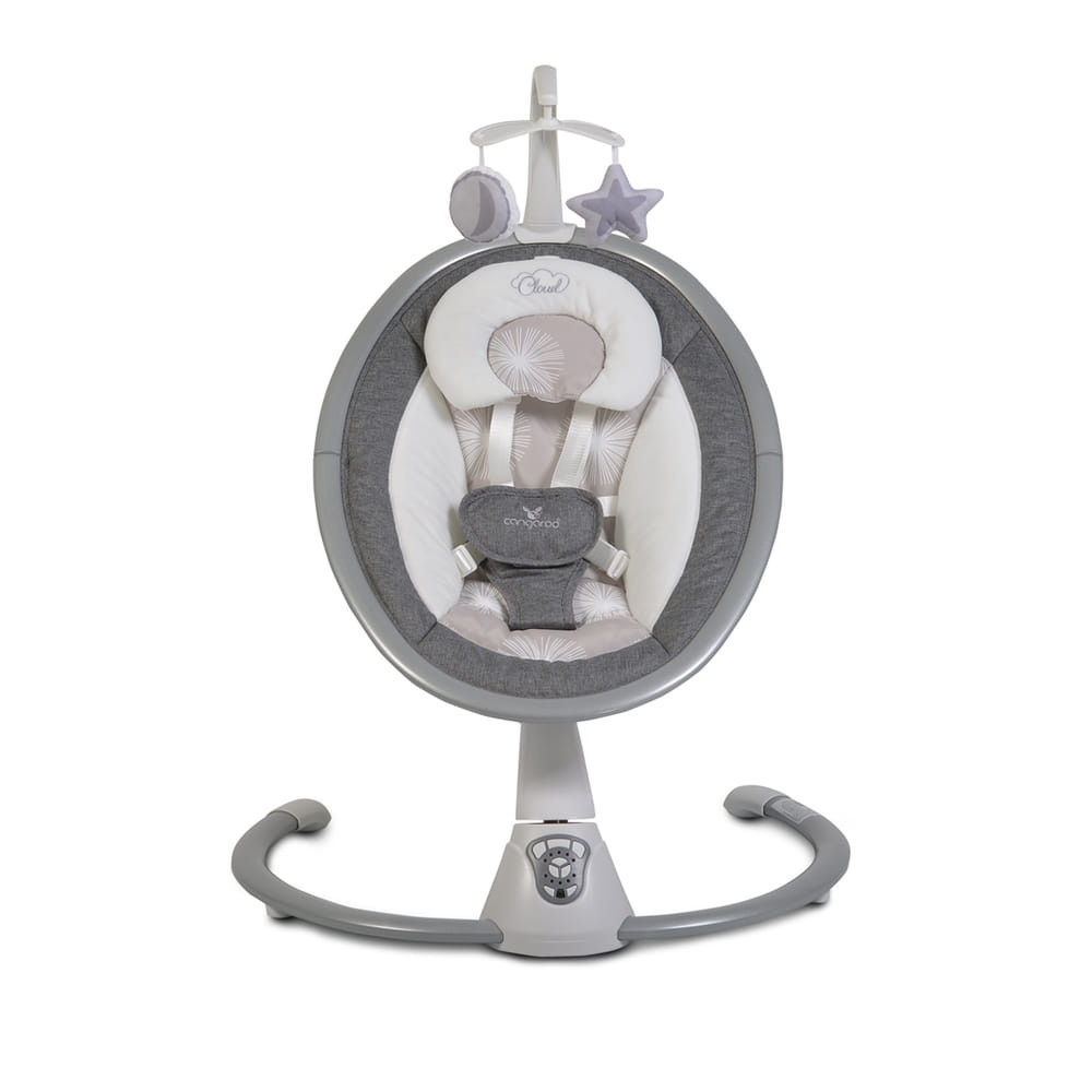 A Cangaroo Cloud Elektromos hinta rezgő, dönthető, 360 fok forgog SZÜRKE színben készült. A hinta egy igazi kis szórakoztató központ a legkisebbek számára. A hinta 10 nyugtató dallammal, levehető játékokkal és 3 hintázási sebességgel rendelkezik. A hinta különlegessége, hogy az ülés 360 fokban elforgatható, így a baba mindig láthatja a szüleit, vagy éppen a környezetét. Két dőlésszög állítható be, hogy a baba kényelmesen pihenhessen, vagy éppen aktívan játszhasson. Az 5 hintázási sebesség és a 3 beállítható automatikus kikapcsolási idő lehetővé teszi, hogy a hintát a baba igényeihez igazítsd. A hintában található mozgásérzékelő automatikusan aktiválja a hintázást, amint a baba mozgásba kezd. Ez a hinta garantáltan a baba kedvenc helye lesz, ahol játszhat, pihenhet és felfedezheti a világot.