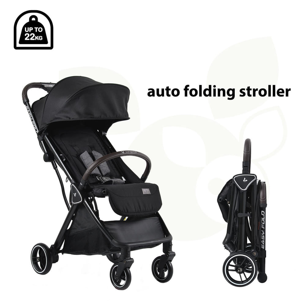 Az innovatív egyérintéses automatikus összecsukási rendszernek köszönhetően a babakocsi pillanatok alatt összecsukódik - tökéletes megoldás a