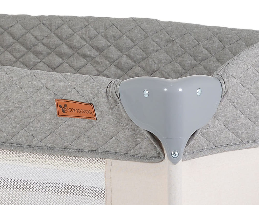 Az INDIANA 2 szintes utazóágy tökéletes választás minden kisgyermekes családnak. A szürke színű, CANGAROO márka által gyártott utazóágy alkalmas 0+ hónapos kortól egészen 14 kg-os testsúlyig. Két szintjével minden korosztály számára ideális: az 1. szinten 0-6 hónapos babák fekhelyéül szolgál, míg a 2. szinten 6-36 hónapos kisgyermekek tudnak pihenni. Az ágy oldala lehajtható, így könnyen hozzáférhetünk a babánkhoz, illetve egy zenélő mobil is található rajta, mely 4 puha játékkal lett felszerelve, hogy a kicsiket szórakoztassa. A könnyű mozgathatóságot kerekek biztosítják. Nem utolsó sorban pedig tároló rekeszt is tartalmaz, így mindig kéznél lehetnek a legfontosabb babaholmik. Utazz bármerre, az INDIANA utazóágy mindig ott lesz, hogy biztonságos és kényelmes alvóhelyet biztosítson a picinek.