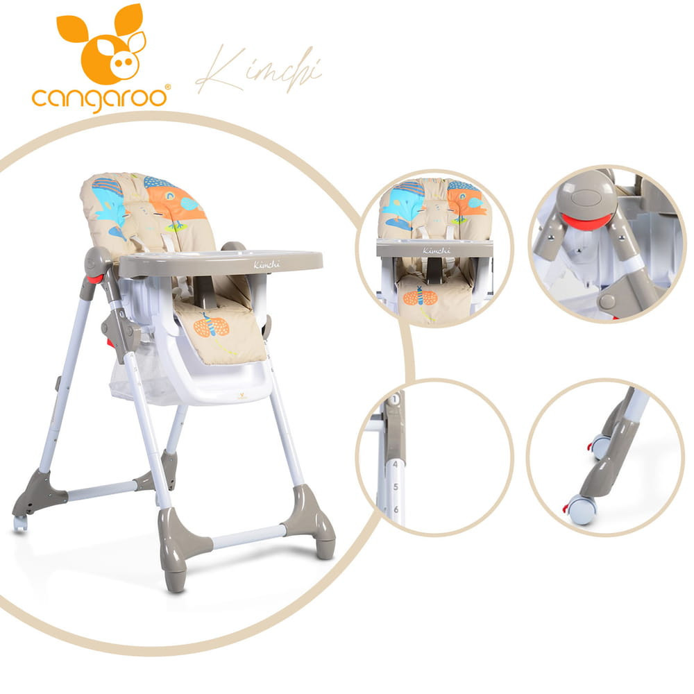 Cangaroo Kimchi etetőszék összecsukható 2 kerekes, dönthető keki