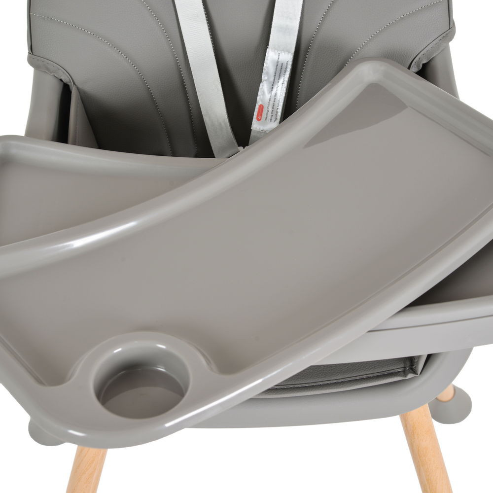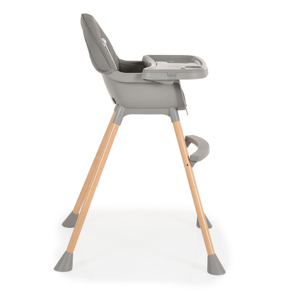 A Donut etetőszék 2 az 1-ben klasszikus, letisztult dizájnnal rendelkezik, 2 rétegű etetőtálcával, pohártartóval és 2 pozícióban állítható, 5 pontos rögzítő rendszerrel, lábtartóval. A lábak fából készült lenyomattal, a párna pedig PU bőrből készült.