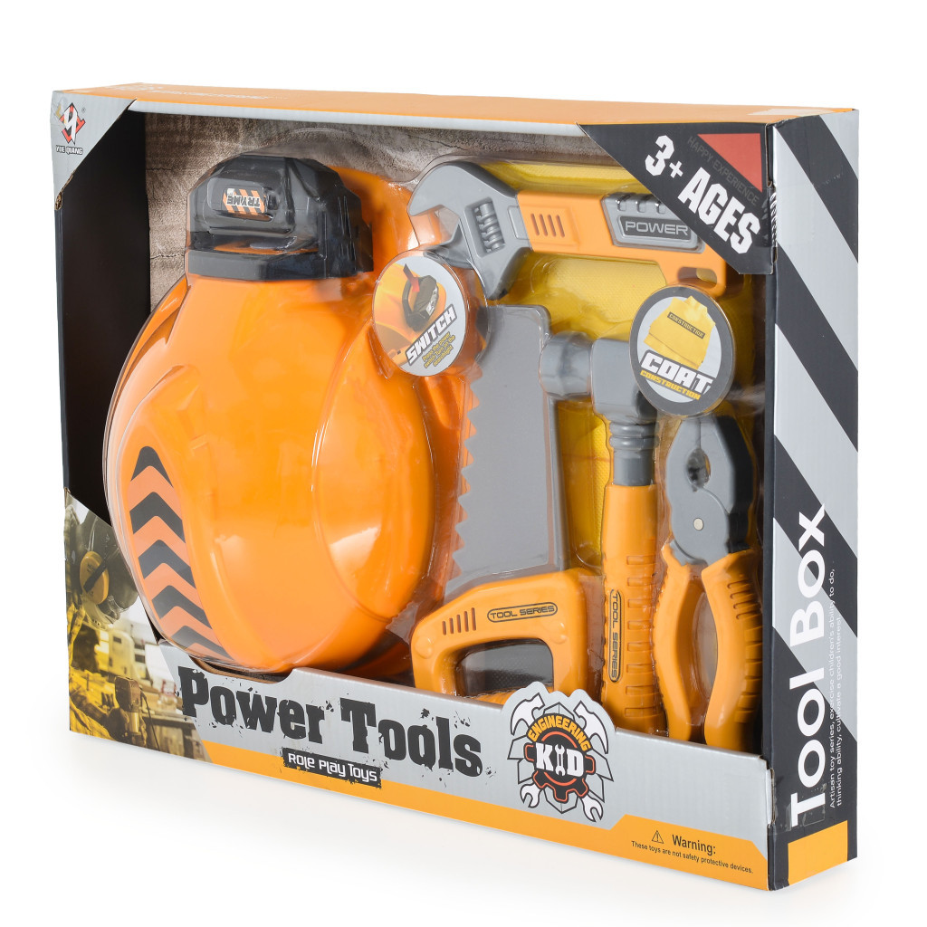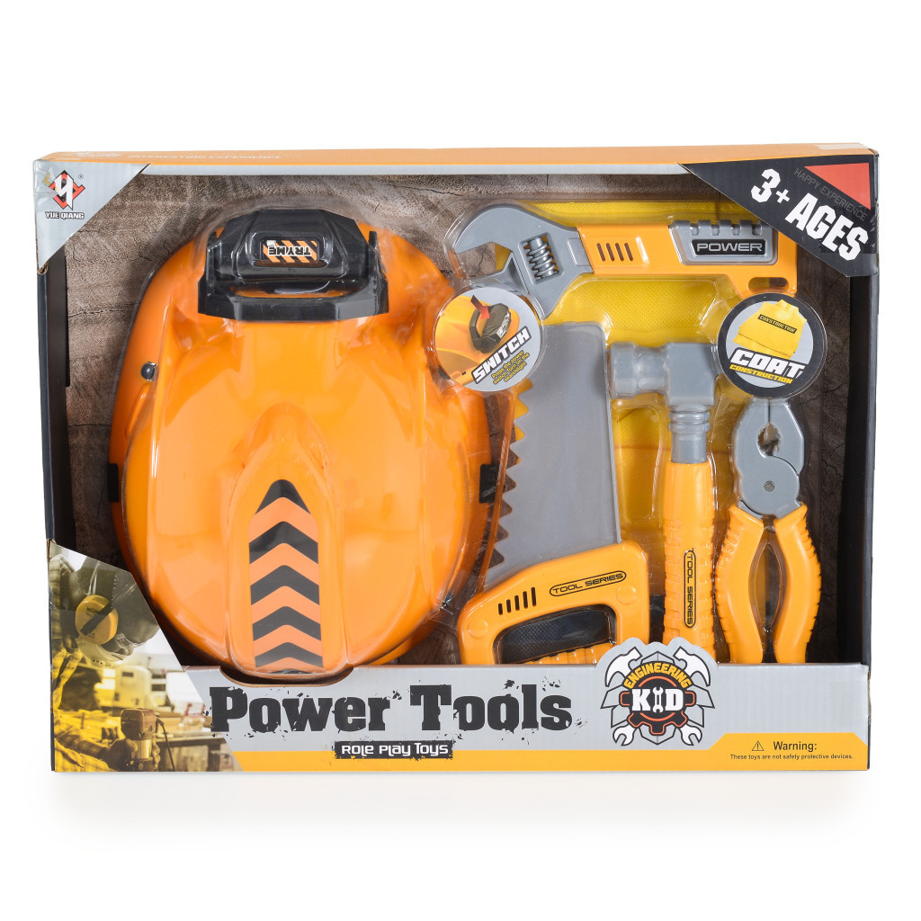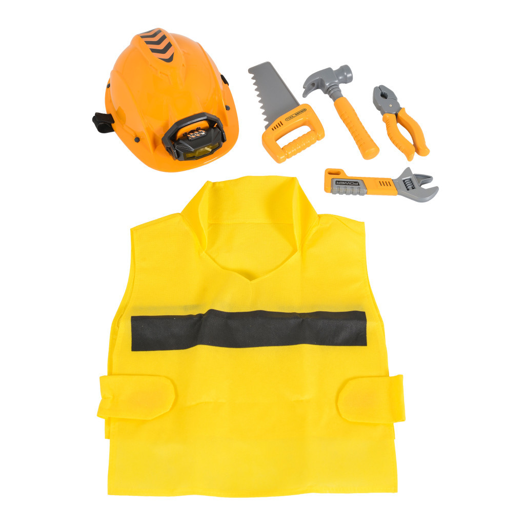 FIÚ játék sisak, mellény, szerszámok SÁRGA