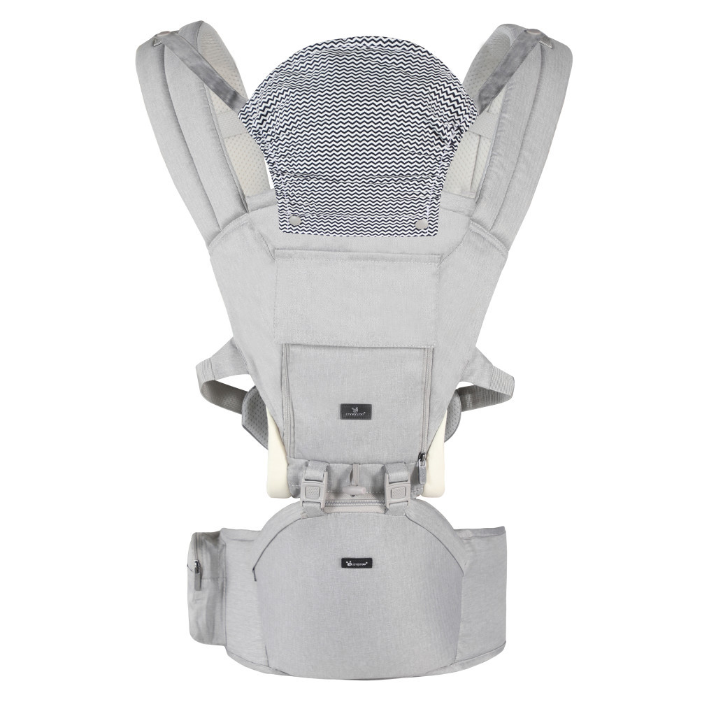 Alkalmas 5 hónapos kortól 15 kg-os korig. Poliészterből készült, a jobb szellőzés érdekében hálós belső béléssel. Három hordozási pozíció: a szülővel szemben, előre néző helyzetben CSÍPŐN és háton. Levehető kapucnival, pamut párnázással a vállpántok és a lábak területén. Elülső zseb cipzárral és hálós résszel az izzadás megelőzése érdekében. Szétcsatolható, ahogy a nő a gyermek. Külön is használható, szilárd alap/ülés, tárolózsebbel. Egyenletesen elosztja a gyermek súlyát anélkül, hogy megterhelné a szülő hátát és derekát. Kézi mosásra alkalmas. Az öv hossza: 123 cm. Gyönyörű világos színek