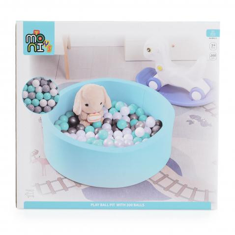 A 80 cm-es belső átmérőjű, 4 különböző színű (5,5 cm méretű) 200 golyóval/műanyag labdával ideális a szórakoztató játékhoz, amely serkenti a motorikus készségeket, a koordinációt, valamint a színek és formák felfedezését.