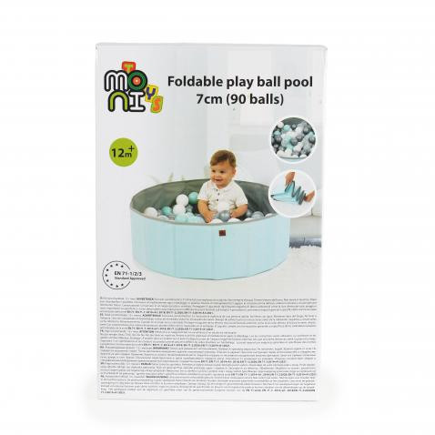 Az összecsukható medence labdákkal nagyszerű módja annak, hogy gyermeke otthon is jól érezze magát. 80x80x26cm összeállított medence. 90 db 7 cmes menta, fehér és szürke labdákat tartalmaz.