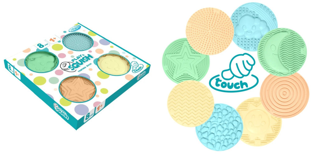 MOCHTOYS Play&Squish szenzorikus szőnyeg lapok, vagy tapilapok játékszett, 8 dbos KEREK LAPOKKAL, pasztel színű. A szenzoros szőnyeg lapok zöld, kék, narancs színekben, dobozban vásárolhatóak. Motorikus készségek fejlesztésére kiváló. A szenzorikus lapokat kézzel, lábbal érintve a gyerekek finom motorikus készségeit fejlesztve játszhatnak a készlettel. Ez az szett kifejezetten kicsiknek készült, így kellemes tapintású, puha, összenyomható elemekből áll. Ideális első szenzoros játéknak, a szenzorikus tapi lapokkal, amin a gyerekek talpán érezhetik a formákat. 1 éves kortól ajánlott. Kérje ki fejlesztő pedagógusok véleményét. elősegíti a láb egészséges fejlődését és szórakoztató módon stimulálja az érzékeket. Ortopédiai funkciók: A szőnyeget az egészséges lábfejlődés és a helyes testtartás elősegítésére tervezték. A textúrája finoman masszírozza a talpat, erősíti a lábizmokat, és segít megelőzni, illetve rehabilitálni a lúdtalpat, a befelé dőlő bokát és a gyenge törzstartást a kis gyermekeknél. Tartós és biztonságos anyagokból készült, amelyek alkalmasak a mindennapi használatra. A szőnyeg könnyen tisztítható és kopásálló.