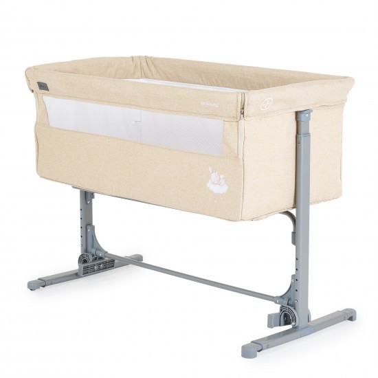 Alkalmas 0 hónapos kortól. A „Szülői ágyhoz rögzítés” funkció megkönnyíti a szülő számára az első hónapok éjszakáit, hogy mindig az újszülött mellett lehessen. Alkalmas minden olyan ágyhoz, amelynek magassága a padlótól számítva legalább 50 cm és legfeljebb 63 cm. A magasság 5 pozícióban állítható, és a kiságy 30°-os szögben dönthető, hogy segítse a baba emésztését, javítsa a légzést és kezelje a refluxot. Normál kiságyként is használható. Egy hintamechanizmust tartalmaz. Fém lábakkal, lehajtható oldal fallal. Tárolóháló nélkül, vászon anyagból.