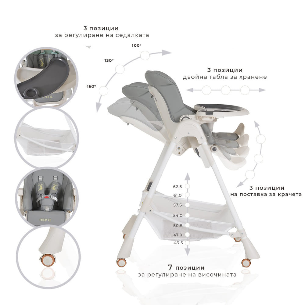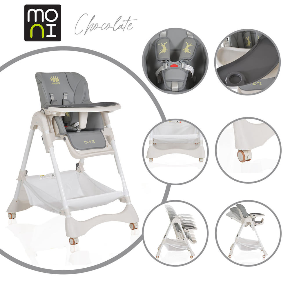 Ez a szürke színű CHOCOLATE etetőszék kiváló választás lehet 6 hónaposnál idősebb és 15 kg-nál könnyebb gyermekek számára. Stabil kialakításának köszönhetően a gyermek önállóan ülhet benne. A székhez tartozik egy színes etetőtálca is, amelynek 3 állítható pozíciója van a gyermek méretének megfelelően. Jó szórakozást, és persze jó étvágyat a kicsiknek!