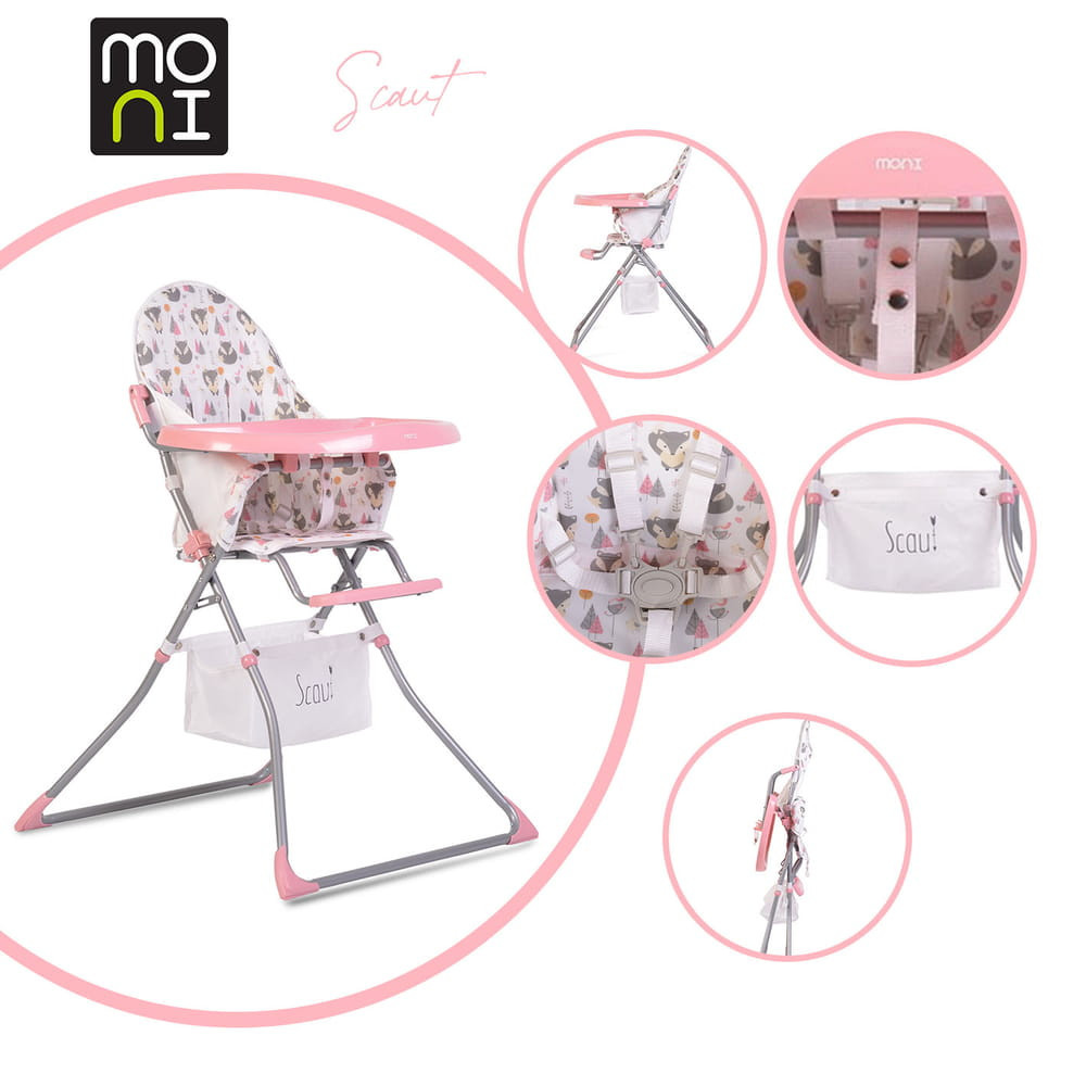 Ez a rózsaszín Moni Scaut etetőszék tökéletes választás minden gyermeknek. Az etetőszék tervezésekor a kényelmet és a praktikumot tartottuk szem előtt, így a szék könnyen összecsukható, ami megkönnyíti a tárolását. A szék az etkezések idejére biztonságos és kényelmes helyet biztosít a gyermek számára. A rózsaszín szín pedig vidámságot visz az étkezések pillanataiba. Az etetőszék Görögországban kapható különböző online áruházakban.