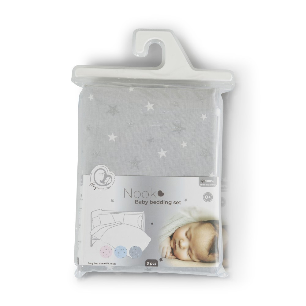 Nook 3 részes bébi ágynemű huzat garnitúra SZÜRKE CSILLAG