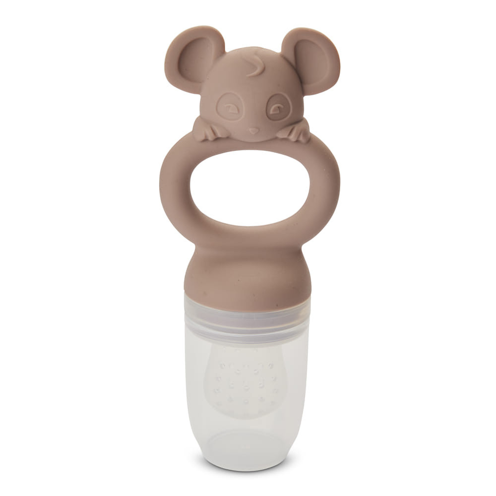 A gyümölcsetető cumi lehetővé teszi a kisgyermekek számára, hogy megtanuljanak maguktól enni, és minimálisra csökkenti a fulladás kockázatát, miközben a baba megtanulja lenyelni a szilárd ételeket, különösen a gyümölcsöket. Az ergonómikus markolat aranyos egérmotívumával könnyen megfogható a kis kezekkel. Az etetőcumik kis lyukakkal rendelkeznek, amelyeken csak az apró ételszemcsék jutnak át, hogy a baba önállóan táplálkozzon. Védősapkával szállítjuk, amely tisztán és higiénikusan tartja a szilikon hegyet.