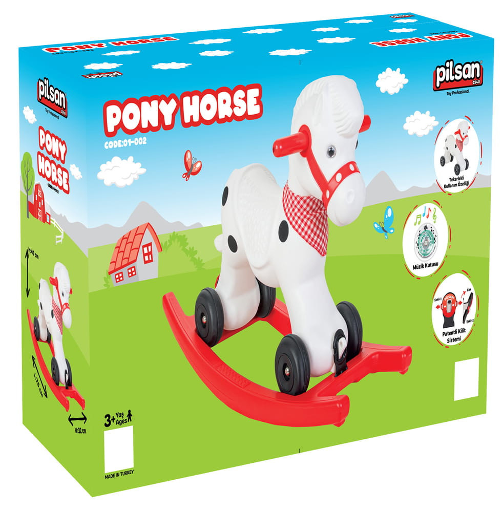 Zenélő műanyag hintaló 36 hónaposnál idősebb gyermekek számára. Max. teherbírása 35 kg.