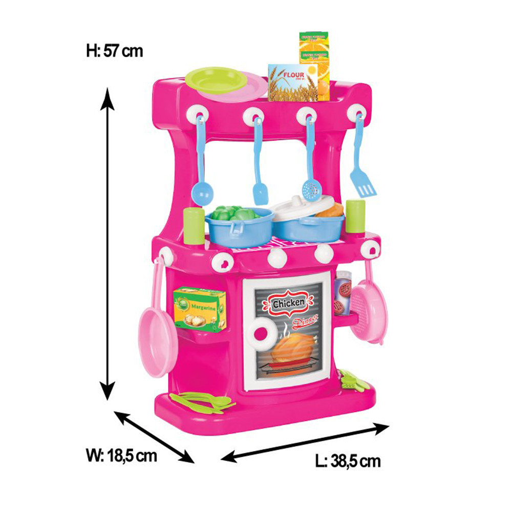 PILSAN Játék konyhaszett 58cm, műanyag, edényekkel, PINK