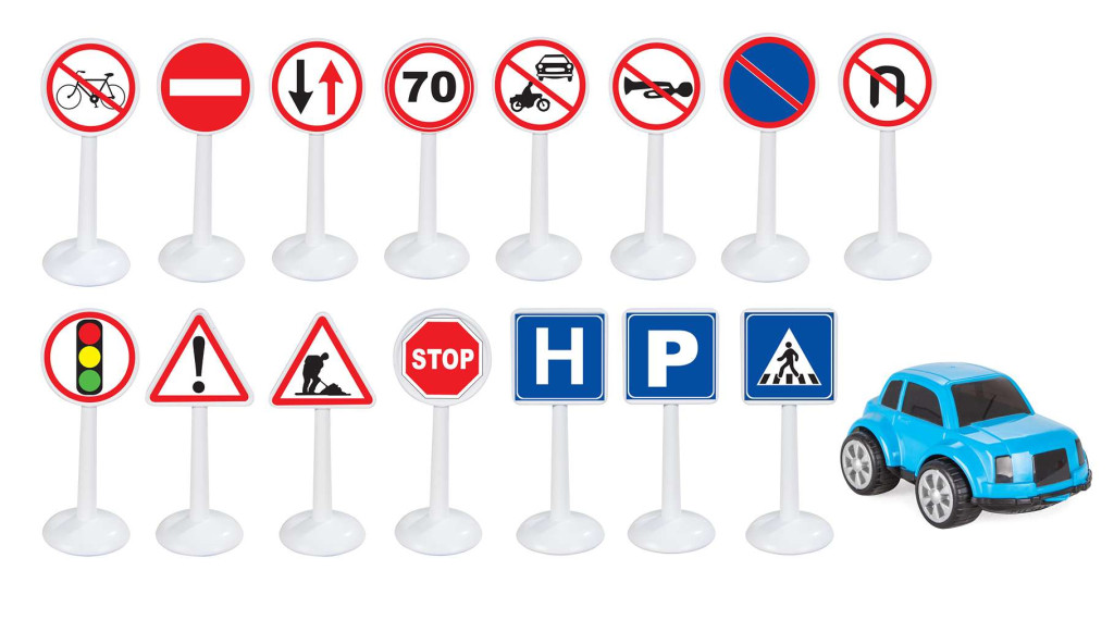 Gyerekeknek mini útjelző táblák, amelyekkel játszhatnak.