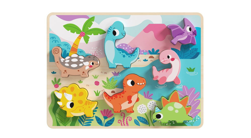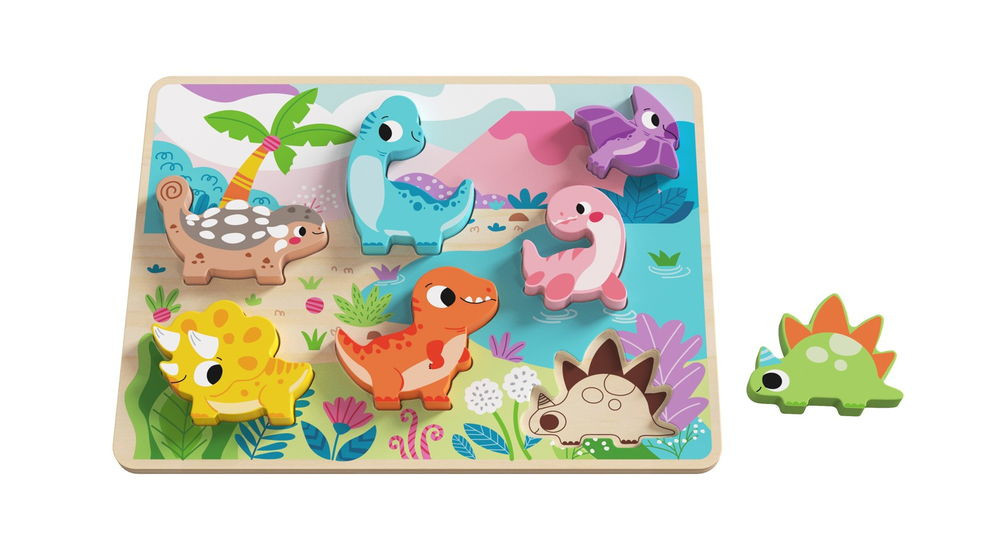 TOOKY TOY fajátékok kiváló minőségben fapuzzle kirakó, forma illesztős, dinoszaurus 8dbos