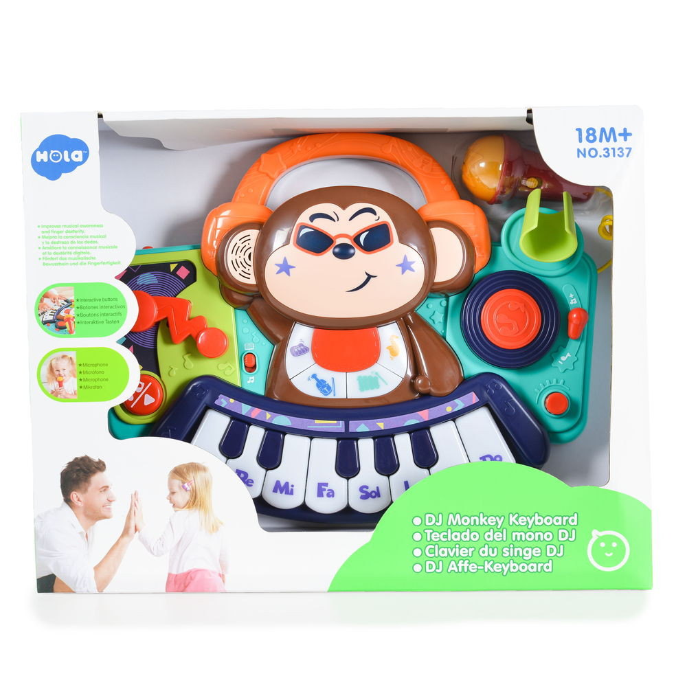HOLA bébijáték, majmos, zenélő, világító gombokkal és mikrofonnal