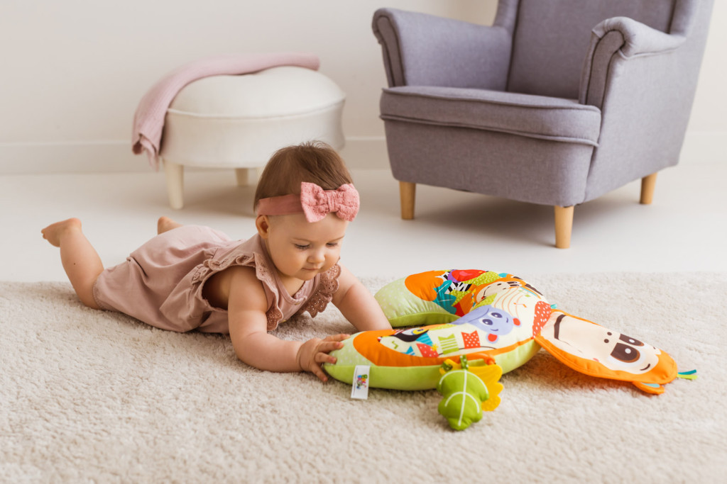 Puha, színes hasra fekvéskor támaszt nyújtó párna, amely játékon keresztül serkenti az érzékszervi fejlődést. A különböző textúrák, az élénk színek és a vidám állatfigurák lekötik a baba figyelmét.