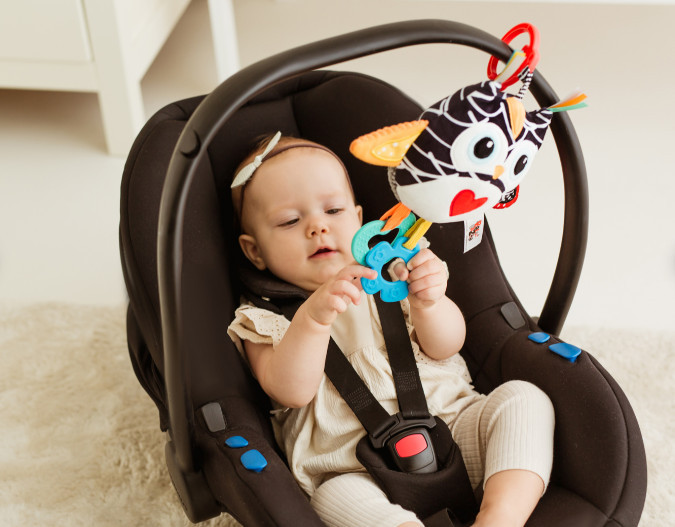 Különböző textúrájú anyagokból készült, így segít fejleszteni a baba érzékszervi észlelését és kíváncsiságát. A két rögzített rágóka megkönnyebbülést nyújt a fogzás során, míg a kompakt kialakítás és a praktikus klip lehetővé teszi a könnyű rögzítést bárhol.