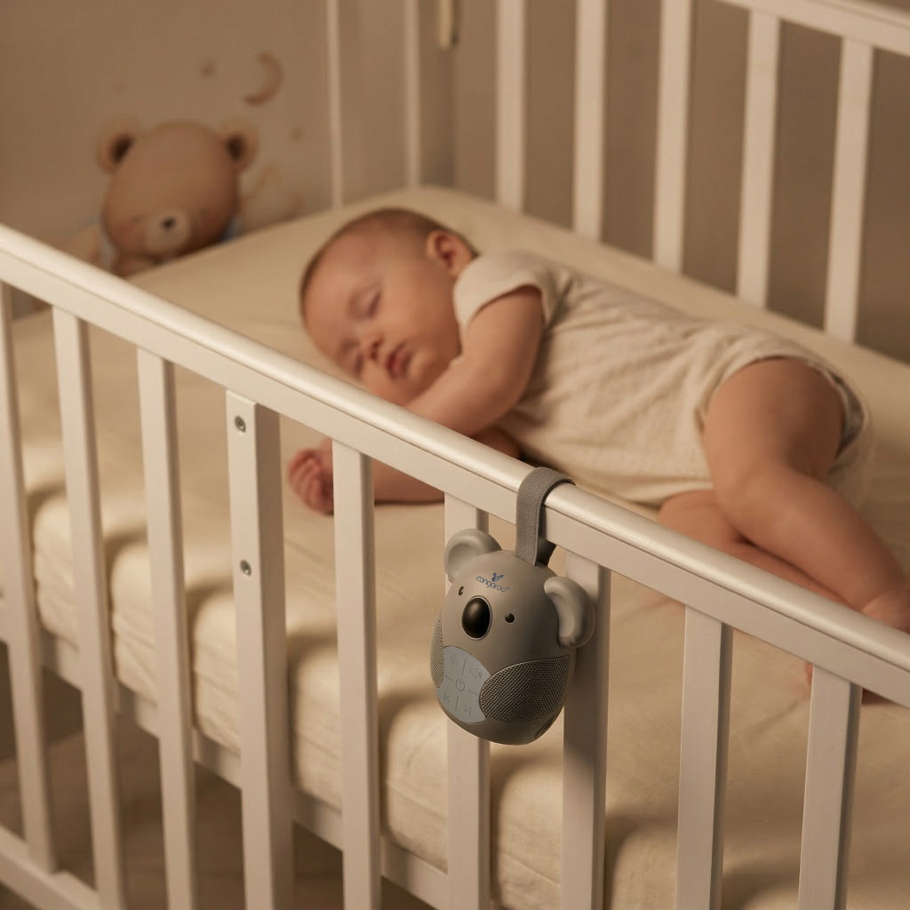 A Koalina egy praktikus segítő a nyugodt környezet megteremtésében, amely elősegíti a könnyebb elalvást és a pihentetőbb alvást a babád számára.
