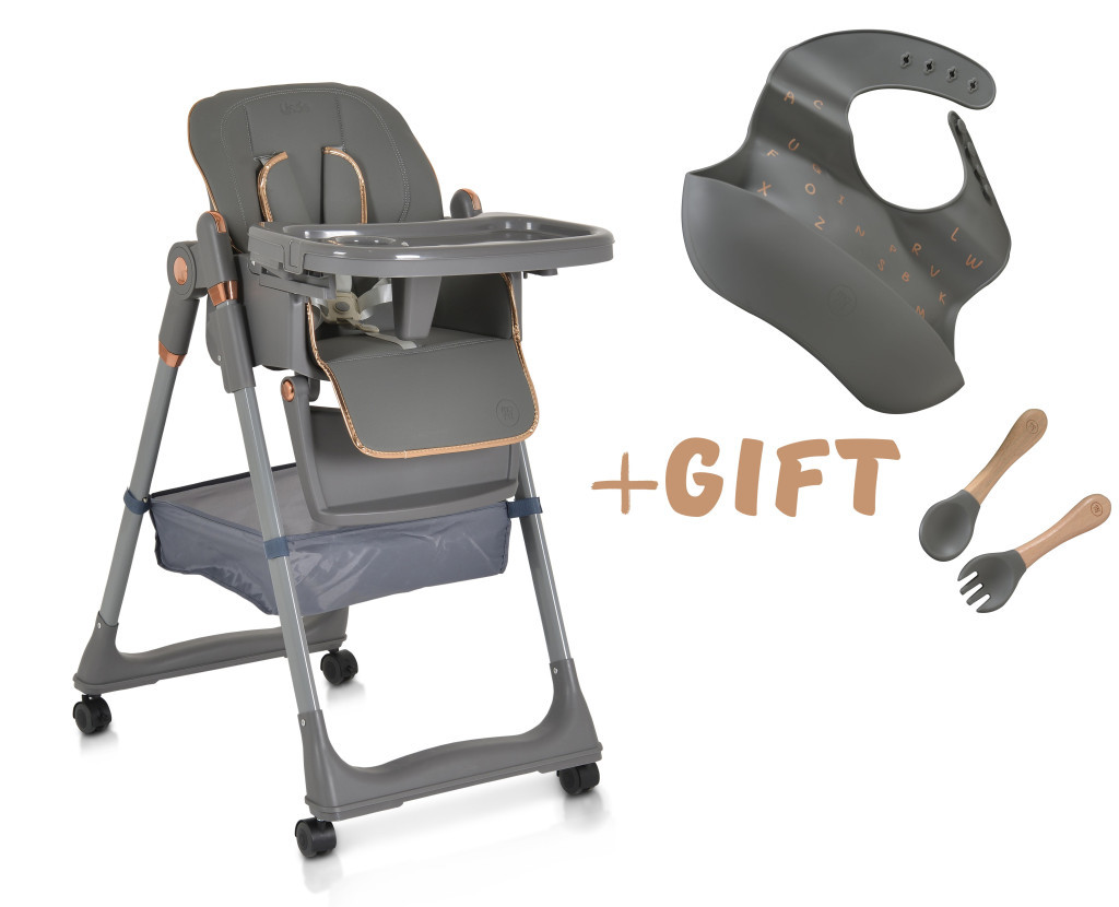 LINDO multifunkciós etetőszék kiegészítőkkel (előke, kanál, villa) SZÜRKE