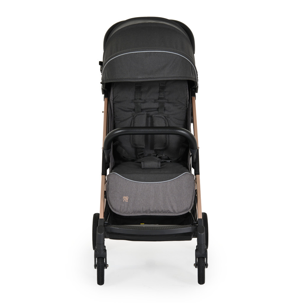 Extrák: baldachin, puha párnázás, állítható lábtartó, speciálisan kialakított vállöv párnázása csúszásmentes anyagból-Lábtartó-beállítható háttámla-5 pontos biztonsági heveder-hátsó lengéscsillapítók